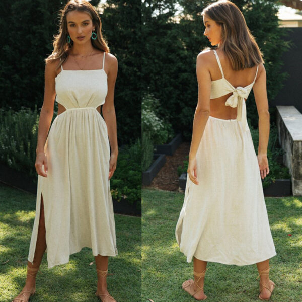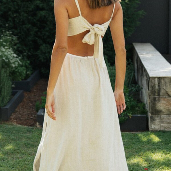 Backless Lace-Up Slit Dress