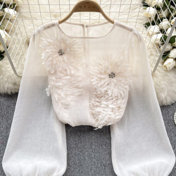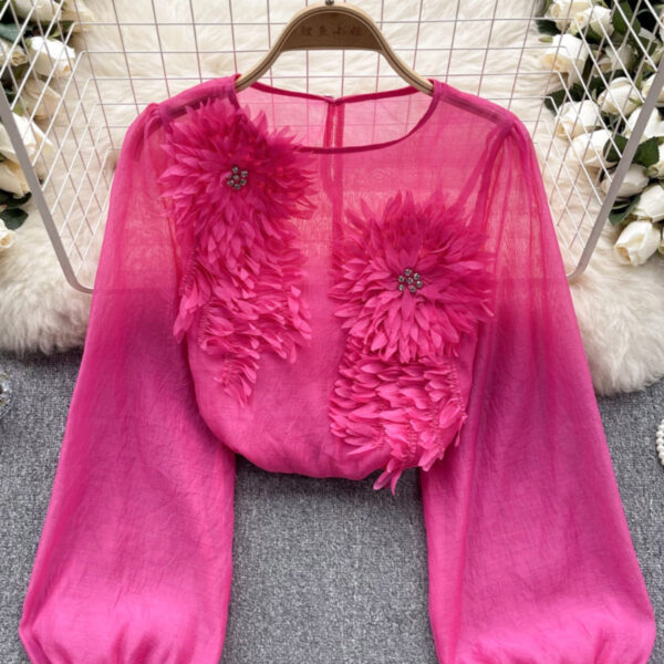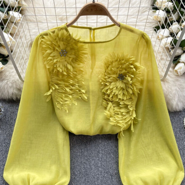 Puff Sleeve Pullover with 3D Flower Design