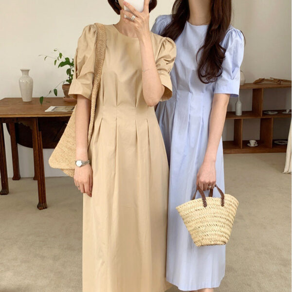 Solid Color Single-Breasted Mid-Length Shirt Dress