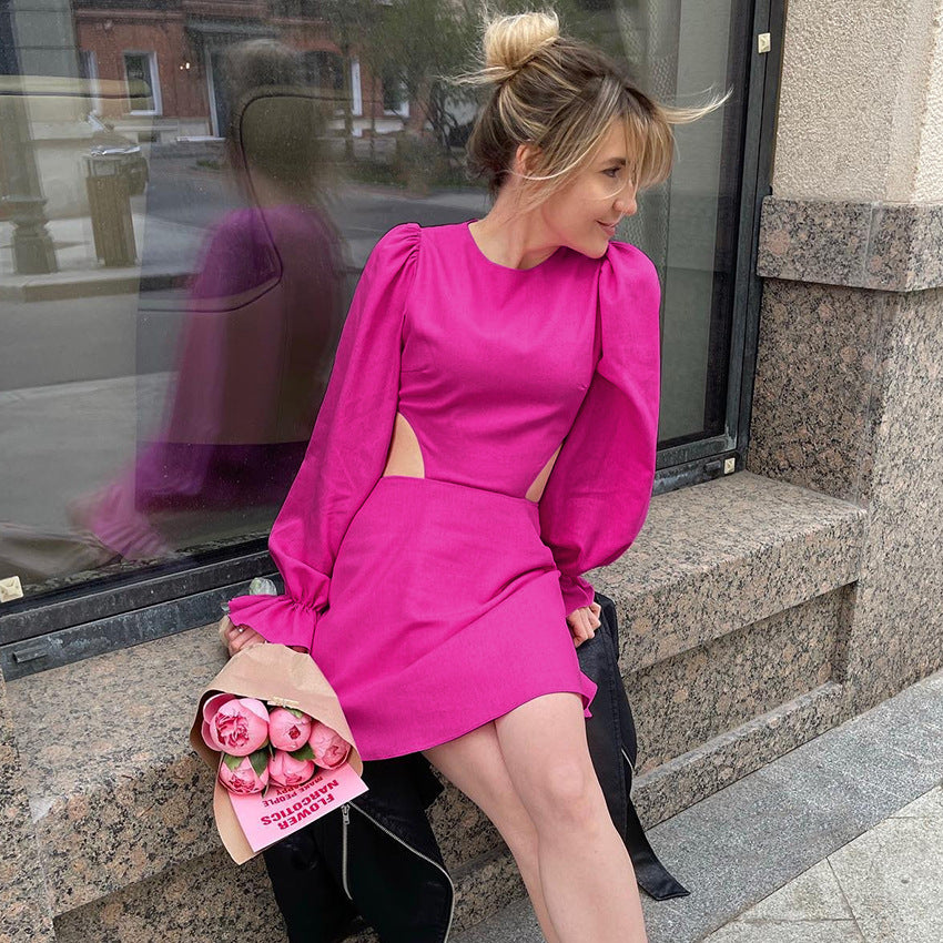 Popular elements: court style sleeve hollow round neck