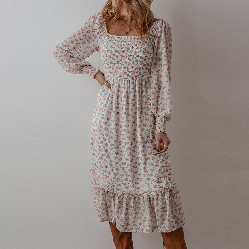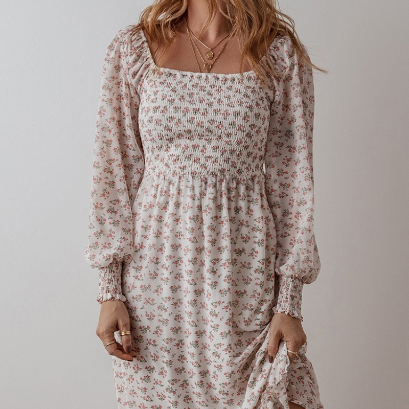 A charming dress with a small floral print and a flattering square neckline. Perfect for a feminine, elegant look, ideal for casual outings or spring events.