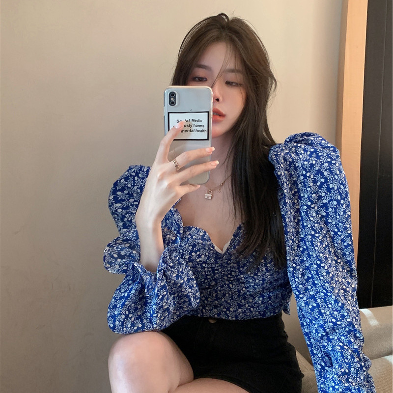 Elegant floral top with a square neckline, adding a touch of vintage charm to your wardrobe.