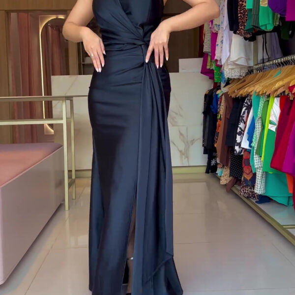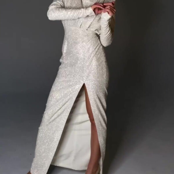 Shiny Slit Evening Dress