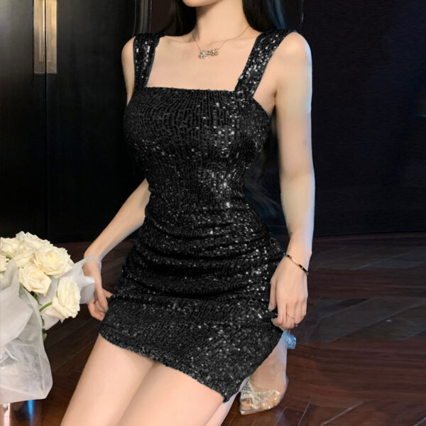 Square Collar Sequined Slim-Fit Dress