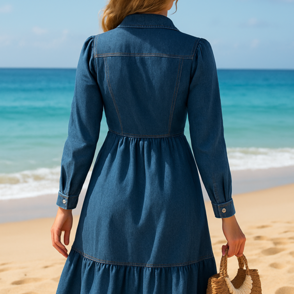 Elevate your summer wardrobe with this chic denim dress featuring a classic lapel collar and long sleeves. Designed for casual comfort and effortless street style, it’s perfect for sunny days and laid-back outings.