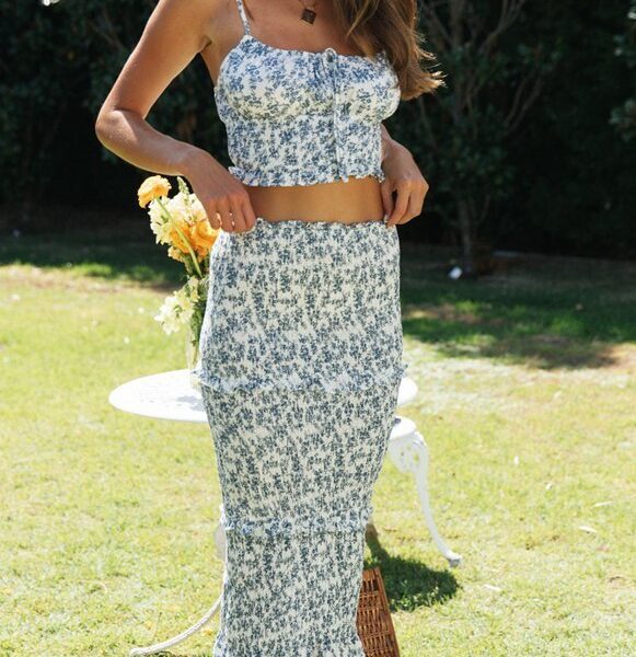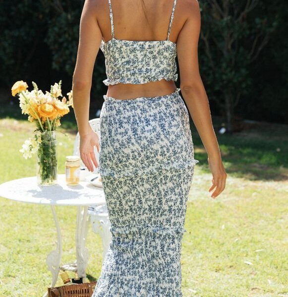 Printed Top & Sling Maxi Dress Set
